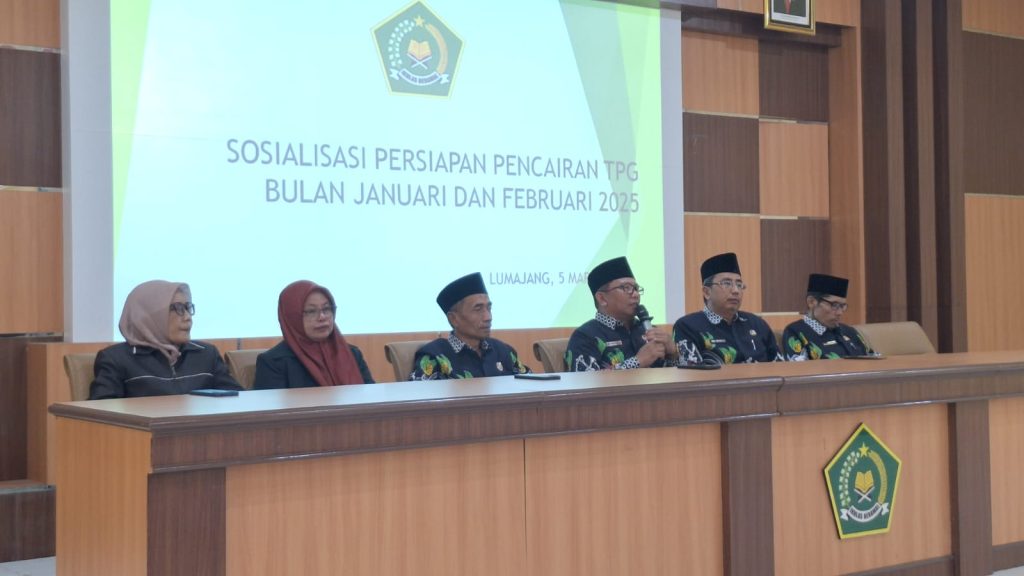 Lumajang (Humas) – Dalam rangka persiapan pencairan Tunjangan Profesi Guru (TPG) untuk bulan Januari dan Februari 2025, Kantor Kementerian Agama (Kankemenag) Kabupaten Lumajang menggelar sosialisasi di Aula Kankemenag Lumajang pada Rabu (05/03).