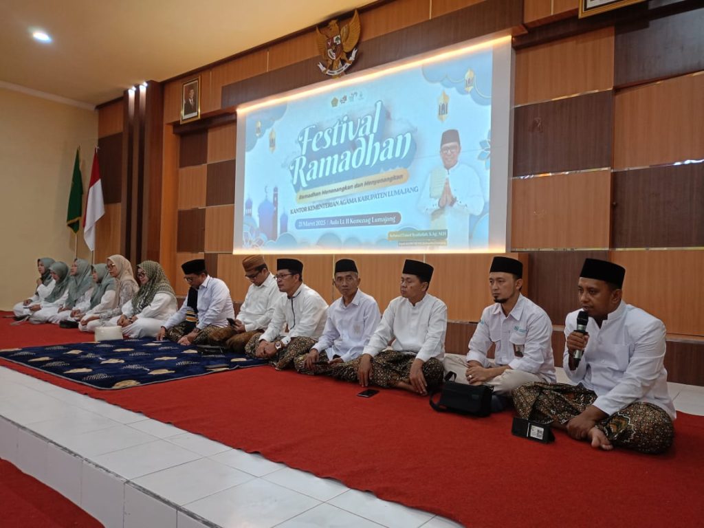 Lumajang(humas)Kantor Kementerian Agama Kab.Lumajang menggelar Festival Ramadan secara serentak se Indonesia yang dilaksanakan oleh Kementerian Agama Republik Indonesia pada Jumat (21/3). Acara ini dihadiri oleh para Kasi, Kepala KUA, Pengawas, Kepala Madrasah, ASN Kankemenag Lumajang, pimpinan Bank Syariah Indonesia (BSI), Kepala Badan Pertanahan Nasional (BPN), serta berbagai lembaga Amil Zakat, seperti BAZNAS, LAZISNU, LAZISMU, BMH, LAZ Yatim Mandiri. LAZ Ummul Quro, LAZIS Al-Haromain, LASDA Saku Yatim, LAZ YDSF