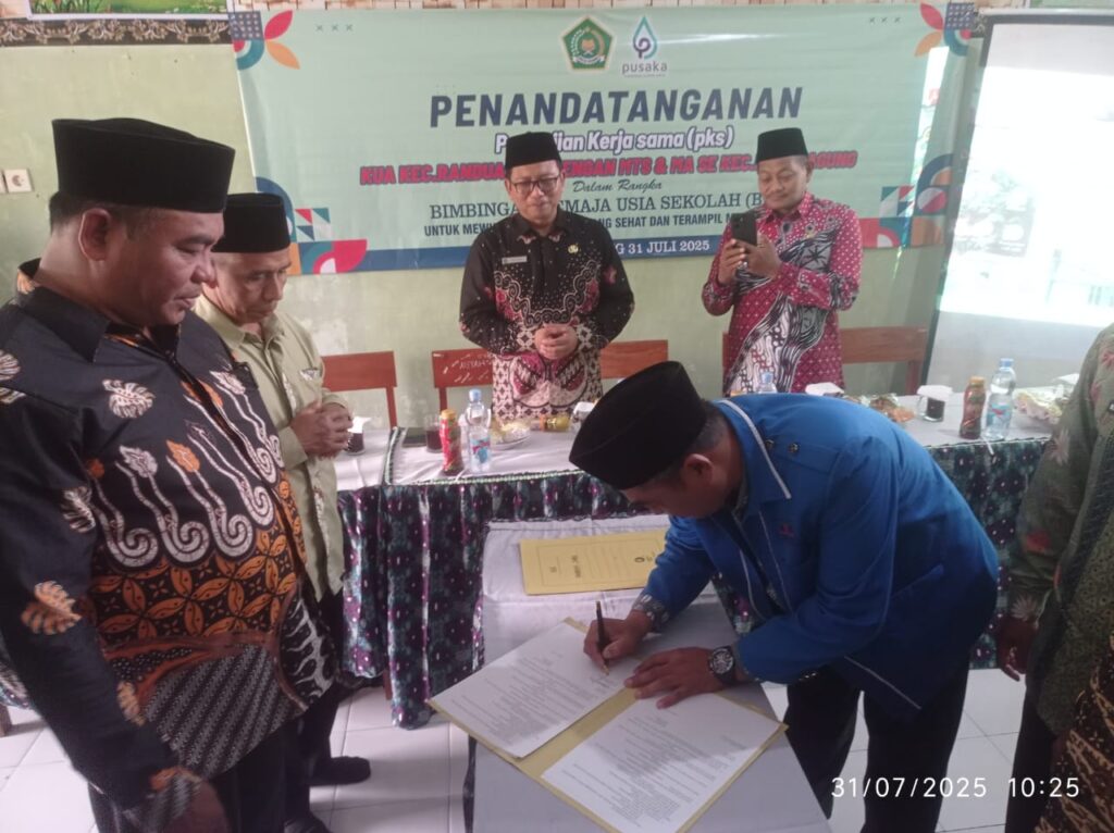 Lumajang (humas) Dalam rangka membentuk remaja usia sekolah yang sehat dan terampil mengolah diri, Kantor Urusan Agama (KUA) Kecamatan Randuagung menjalin kerja sama strategis dengan seluruh MTs dan MA se-Kecamatan Randuagung. Penandatanganan Perjanjian Kerja Sama (PKS) ini dilaksanakan pada kamis, 31 Juli 2025, bertempat di aula KUA Randuagung.