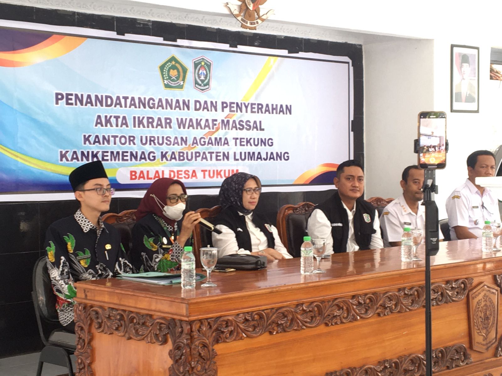 Prosesi ikrar wakaf dipimpin oleh Sriwanti, Penyelenggara Zakat dan Wakaf (Zawa) Kantor Kementerian Agama Kabupaten Lumajang, serta dihadiri oleh Plt. Kepala KUA Kecamatan Tekung, para wakif, dan nazir penerima amanah wakaf.