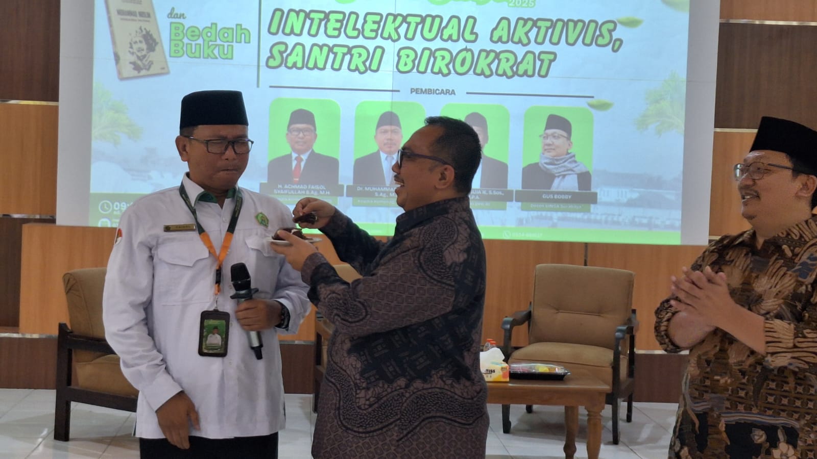 Lumajang(Humas), Senin (3/11/2025) — Kantor Kementerian Agama Kabupaten Lumajang menggelar kegiatan Bedah Buku berjudul “Muhammad Muslim: Intelektual Aktivis, Santri Birokrat” di Aula Kemenag Lumajang. Acara ini menjadi momen istimewa karena bertepatan dengan ulang tahun ke-50 Dr. H. Muhammad Muslim, sosok yang menjadi tokoh utama dalam buku tersebut.