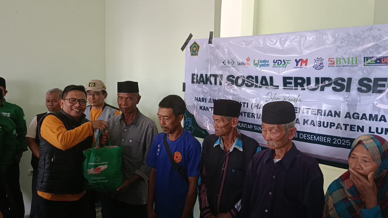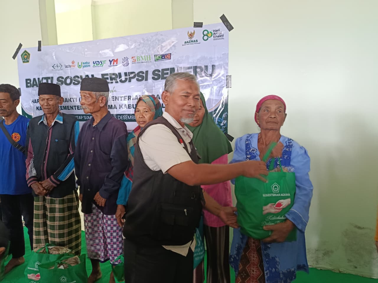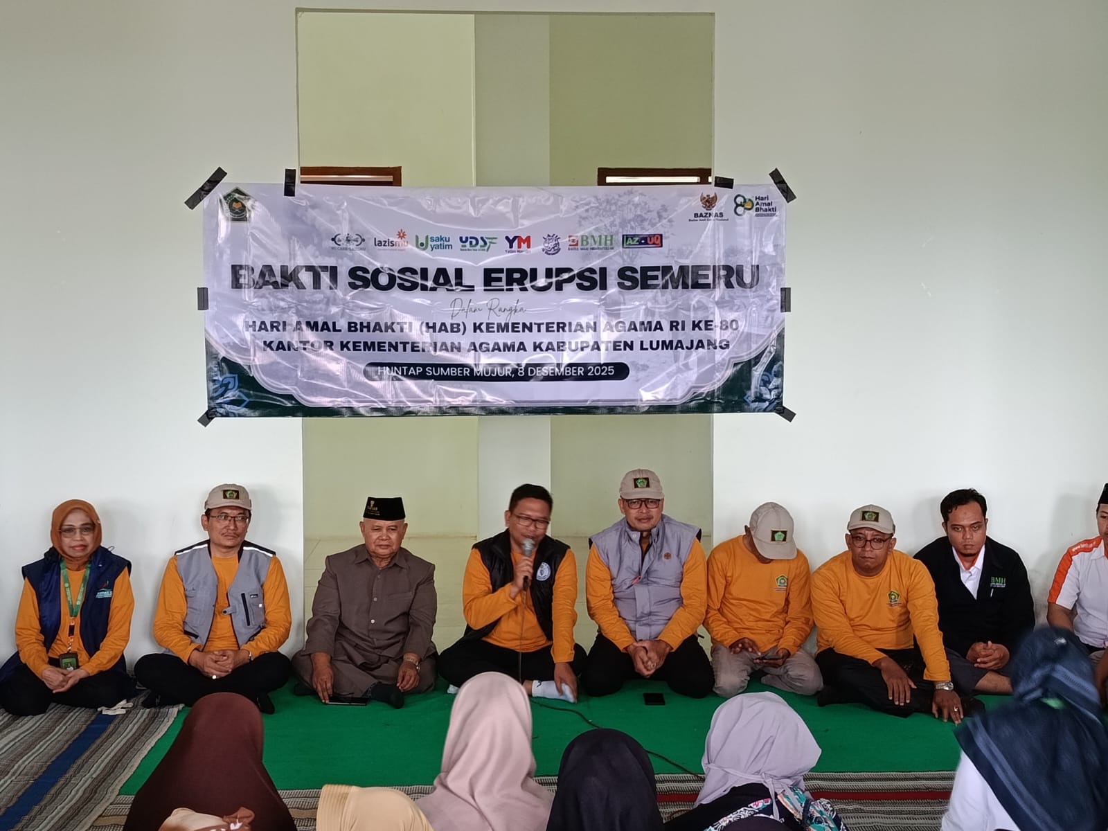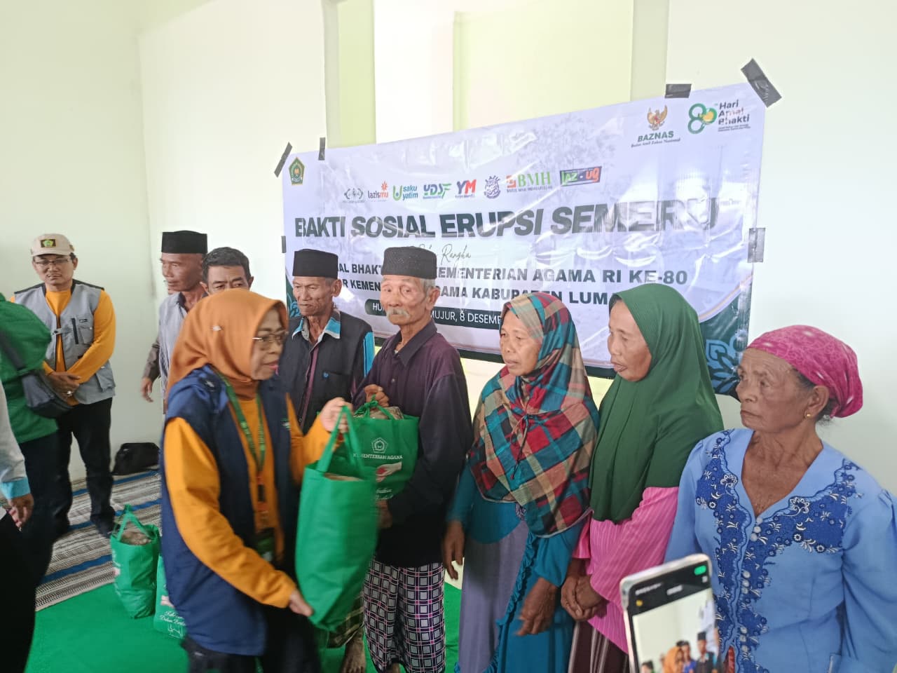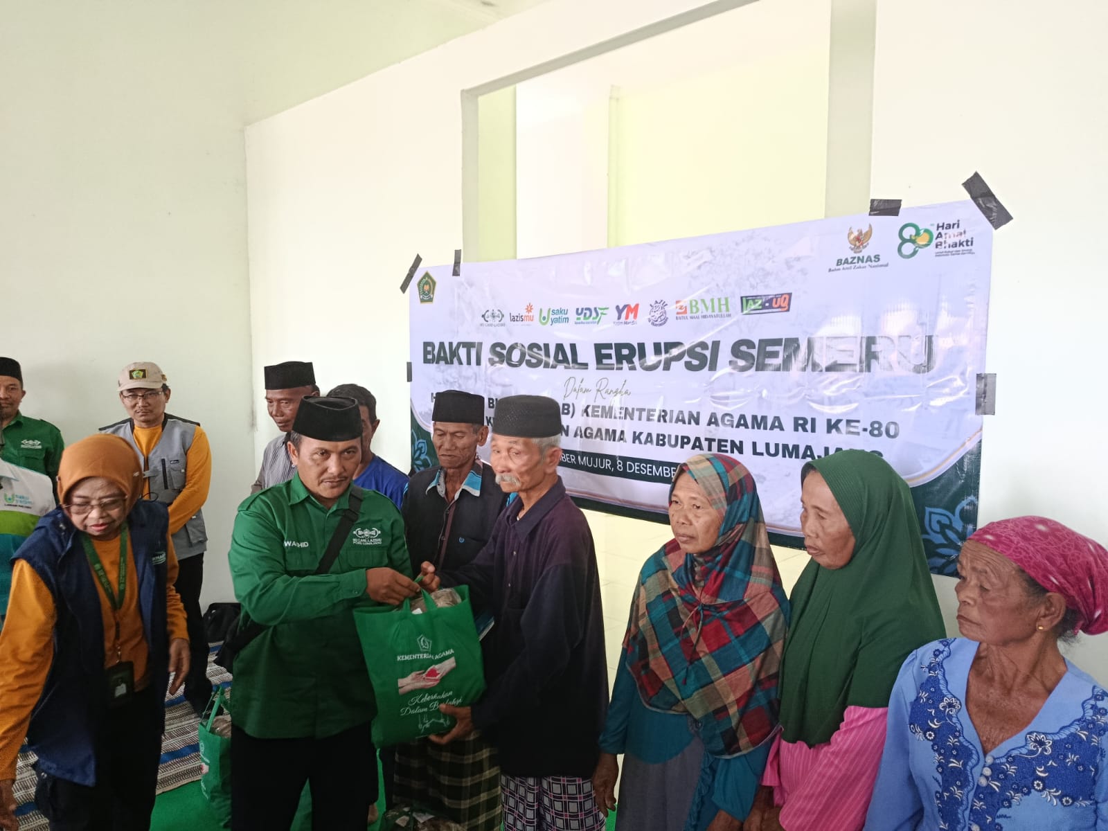 Lumajang(Humas)Kantor Kementerian Agama Kabupaten Lumajang bersama lembaga amil zakat se-Kabupaten Lumajang melaksanakan bhakti sosial di wilayah Hunian Tetap (Huntap) Desa Sumber Mujur, Selasa 08/12/2025, dalam rangka memperingati Hari Amal Bakti Kementerian Agama RI ke-80.