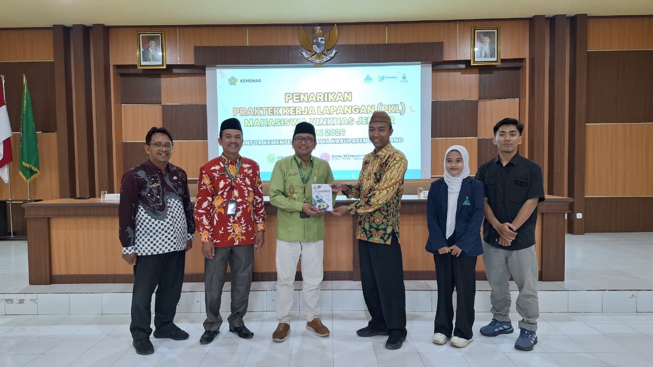 Lumajang (Humas) – Universitas Islam Negeri Kiai Haji Achmad Siddiq (UIN KHAS) Jember resmi menarik kembali mahasiswa Praktik Kerja Lapangan (PKL) yang bertugas di lingkungan Kantor Kementerian Agama (Kemenag) Kabupaten Lumajang tepatnya di KUA se Kab. Lumajang. Acara penutupan dan penarikan ini berlangsung khidmat di Aula Kemenag Lumajang pada Kamis (12/2/2026).